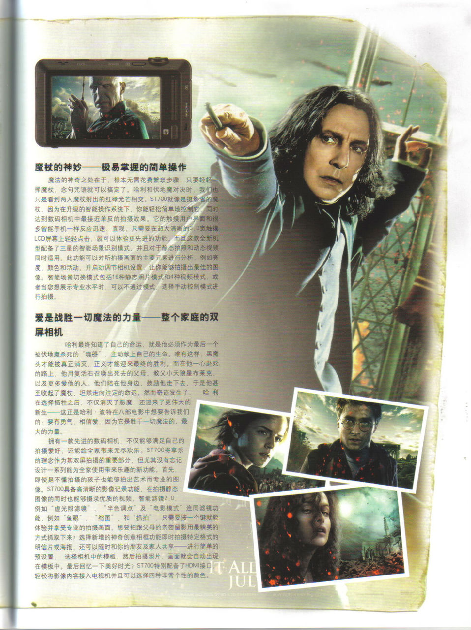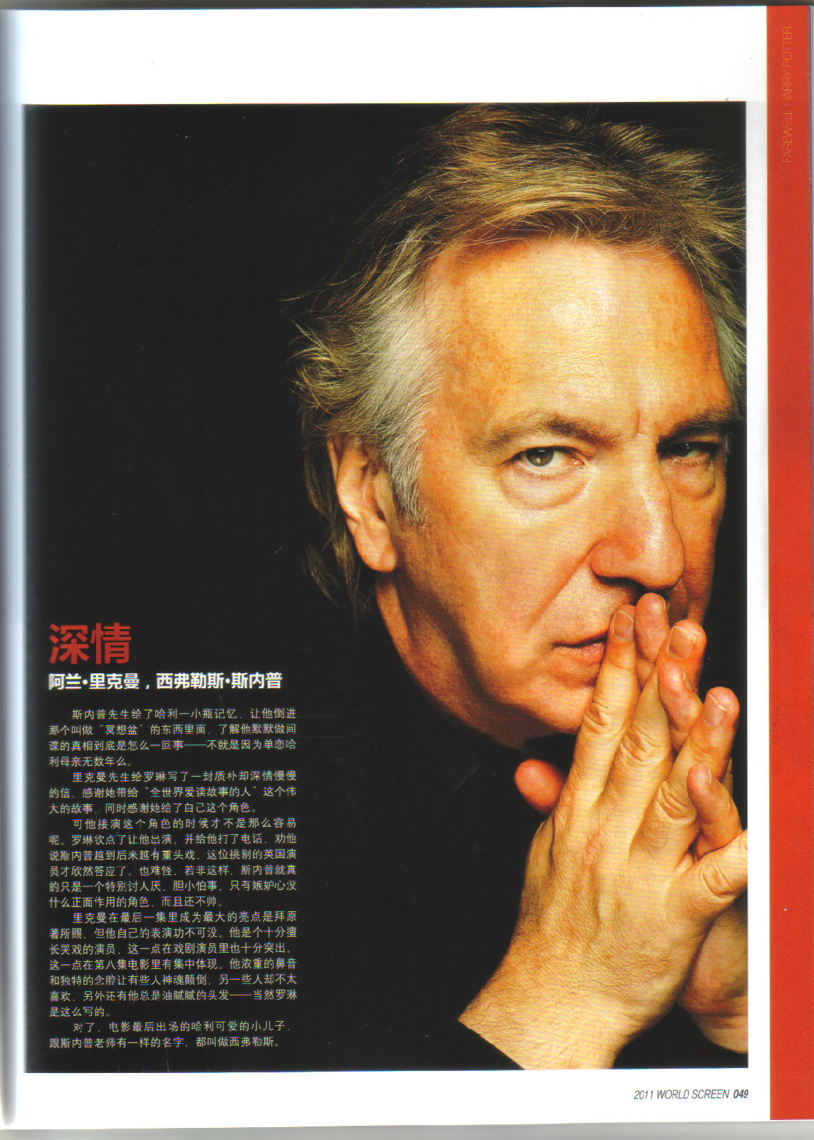 今天跑报刊亭,终于发现哈利波特的特辑,可惜教授部分不是很多,不过句句极其赞扬,无论是对教授还是对alan的肯定。