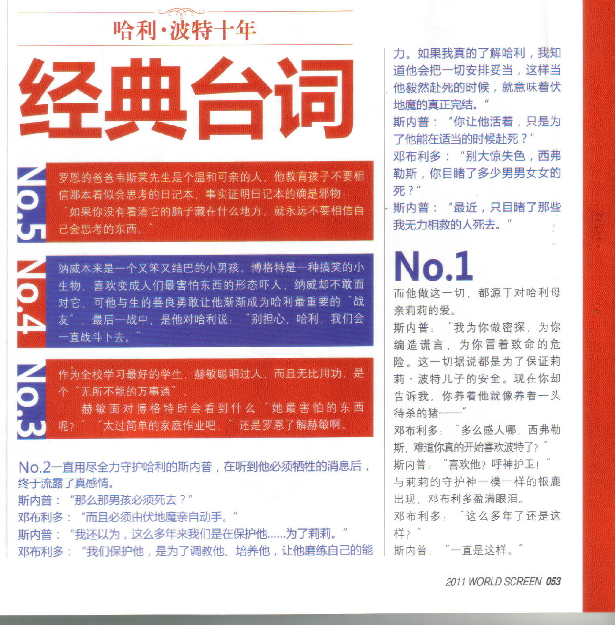 经典台词的回顾,排名第一第二,都是斯内普与邓布利多的对话。