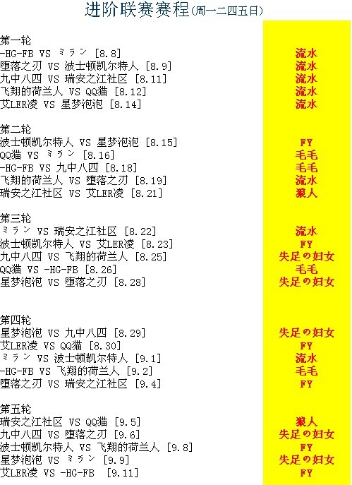 进阶联赛赛程