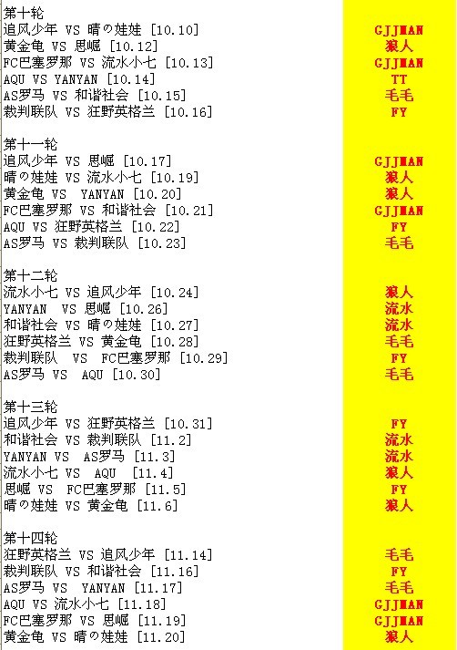 这次赛程表是手机帝搞的,我也不明白怎么会这样~