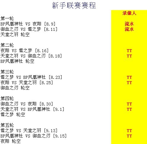 新手联赛赛程