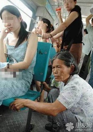 坐车回家,挤上了公交,因无座位只好蹲在了公交车上,而旁边的这位女士竟然无动于衷。 看到我震惊了,让一个座位真的有那么难吗?现在的人到底怎么了?鄙视那些“没素质”的人,看到请转发鄙视城里那些没素质的人