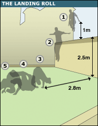 人在远处或高处跳跃落地时,再利用侧滚马上站起来或继续下一个动作。