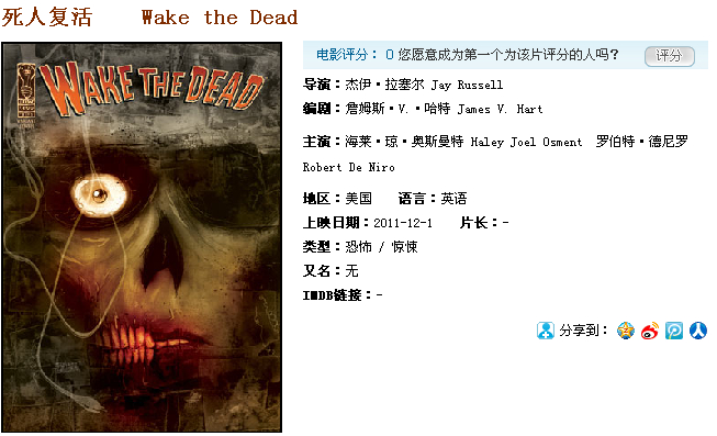 《唤醒死人》根据《厄夜三十》(30 Days of Night)作者Steve Niles的同名漫画改编,由《尼斯湖怪》(The Water Horse)导演Jay Russell执导。