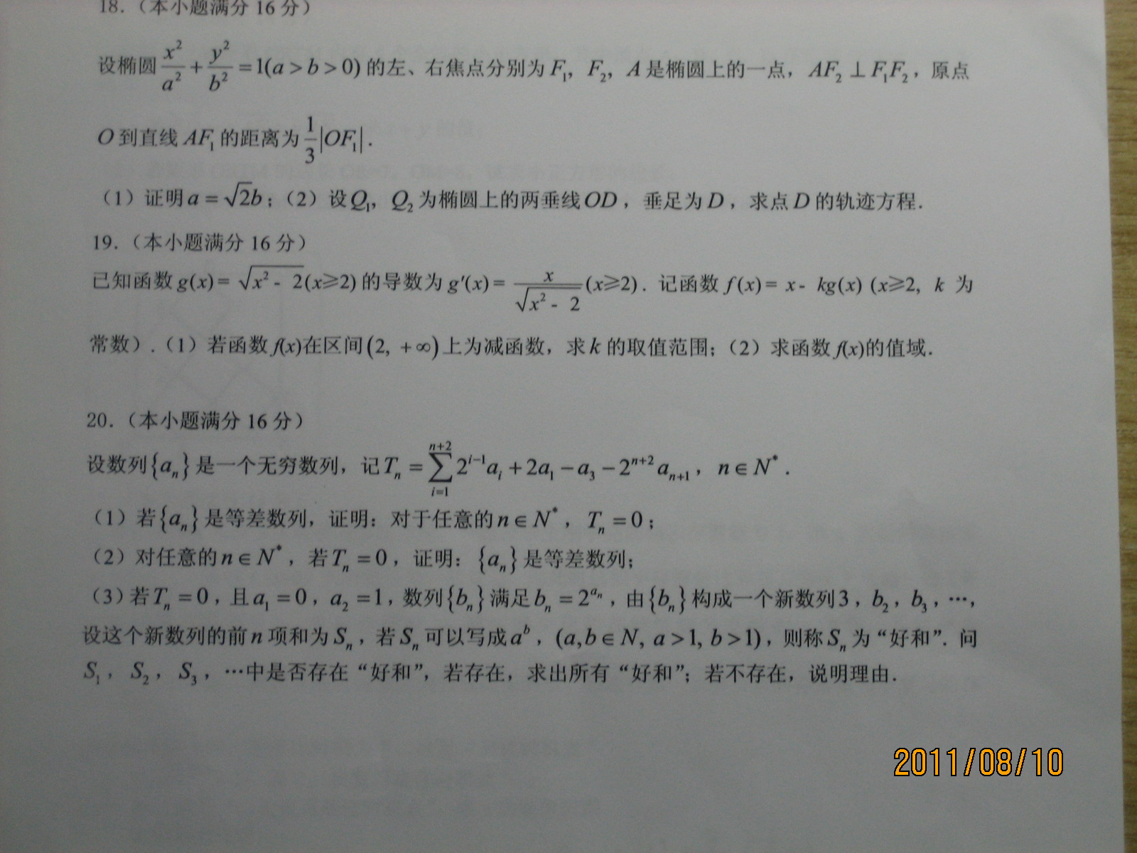 关键是太过了后面三题看都没看考试就结束了,活活扣了48分,回家又重做了一遍后三题,我对数学不反感但当我做完解析几何时我已经意识到有点厌烦了,花了我20多分钟,后面两题就不敢做了,估计这次要降级了