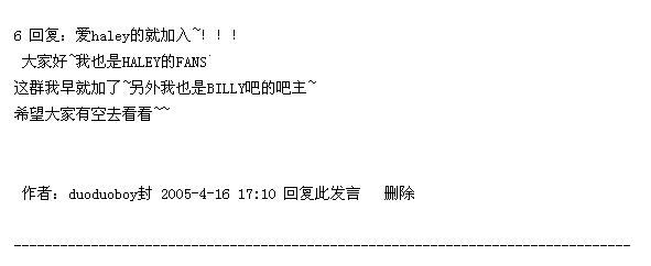 haley吧与billy吧有着长久的友谊: