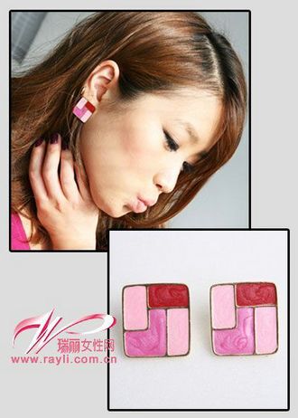 均色长方体粉色纽扣耳钉,简洁大体之感~