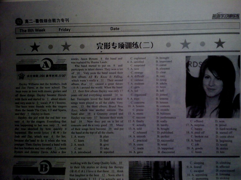 |Paramore|英语报纸上的hayley 。求各种翻译 哈哈哈哈哈哈哈哈
