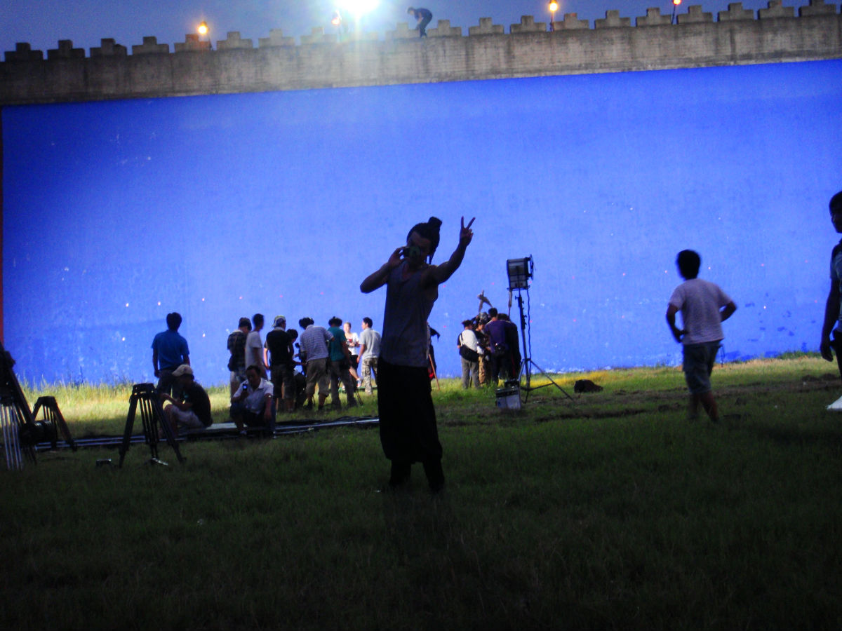 我们守了老胡一整天 到了傍晚的时候 老胡休息了一下 从车里走出来 准备拍下一组戏