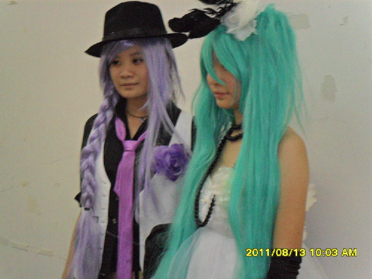 弗兰和师傅骸——话说后面那个粉T恤的男的头上带的那表情好无语- -。