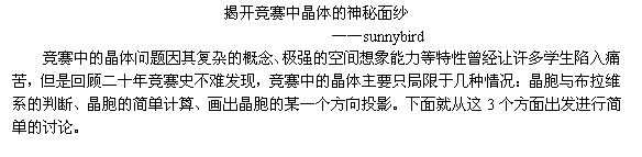 【给即将或未来参加竞赛的孩纸们】竞赛中的晶体