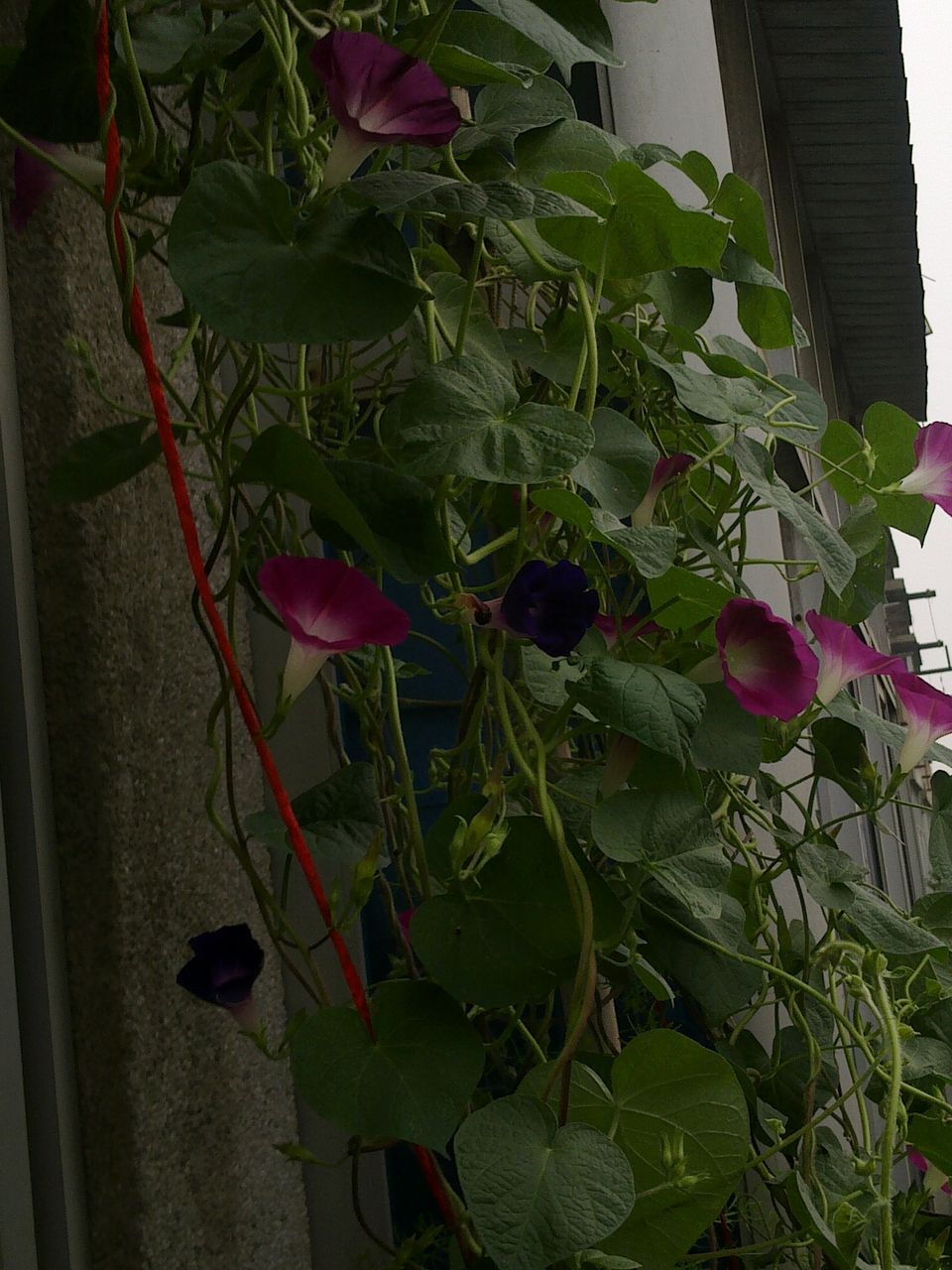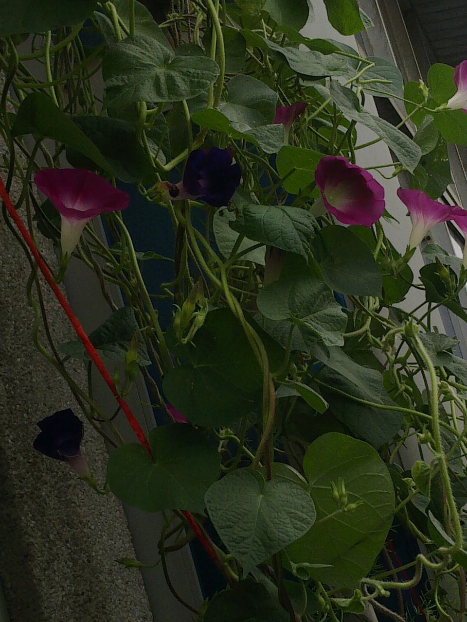 不知道颜色的情况下,老妈在路边挖了三颗牵牛花苗,回来种上~慢慢等待,