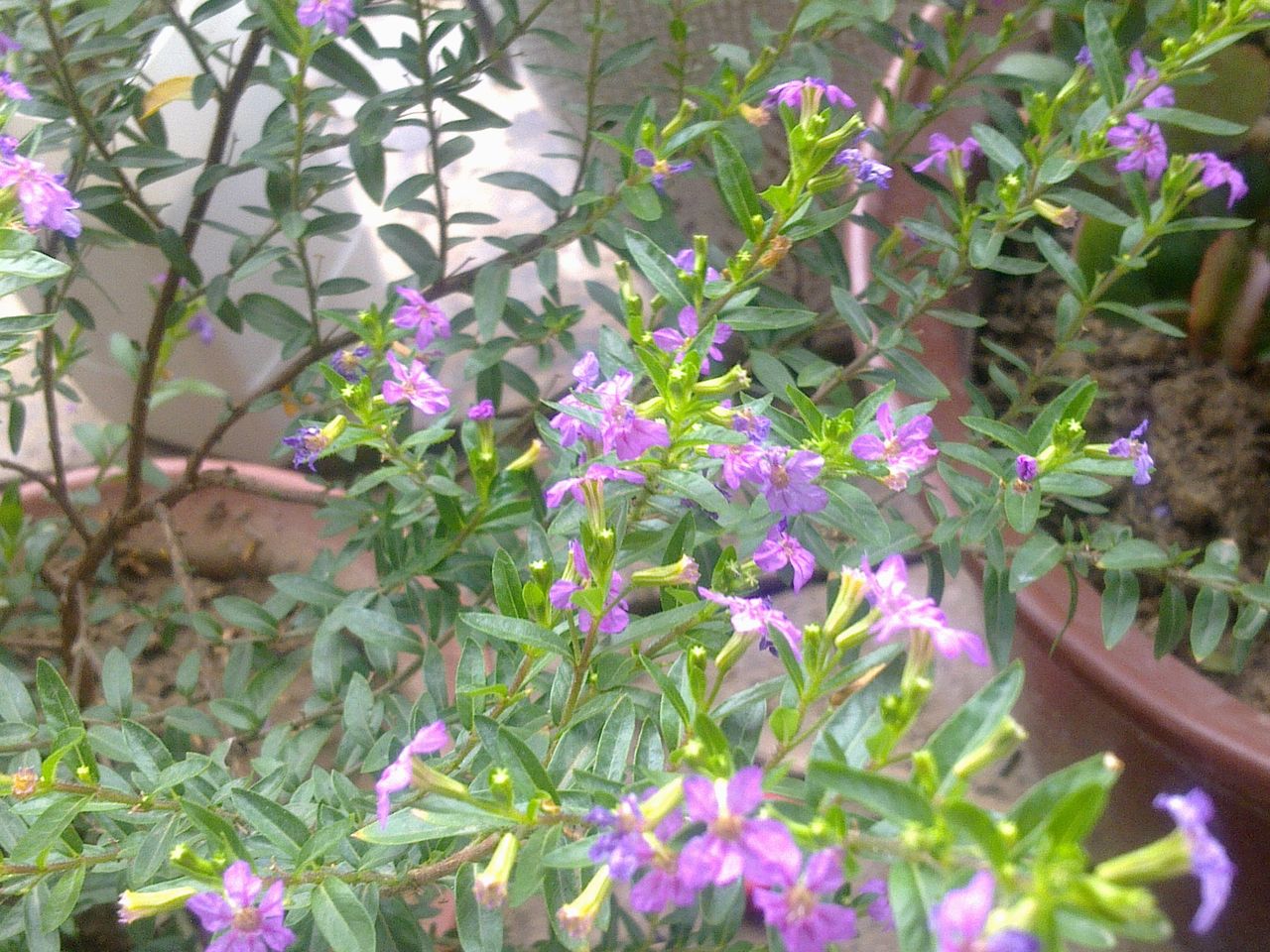 后来嘛。由于她枝叶太旺盛了,严重影响了两外两棵的生长。。。。花朵小又不显眼,老妈一狠心,把她拔了