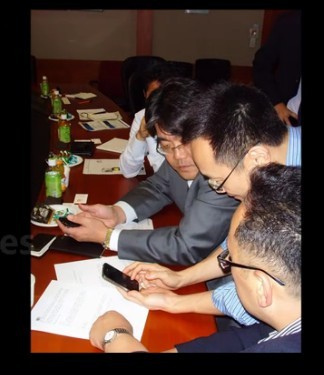 可能是小米手机真图 ,小米高管们陪三星高管一起