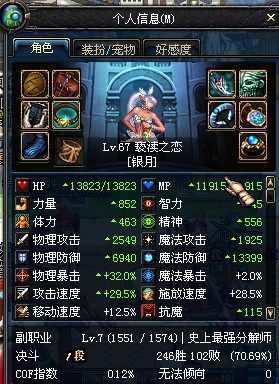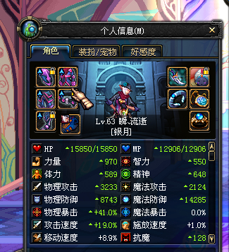 40-45CC套 +0时尚 冰戒 佩鲁斯 悲鸣手镯 手套 任务送魔法石 没工会 一套高级(鞋子选力量)才2800面板 +11时尚没碎前倒还可以有3200面板。。