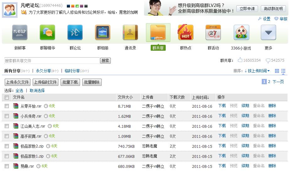 群号169974446,群的建设需要大家的支持,呵呵,愿意的道友可以加一下。在里面你可以发书载书求书,大家各取所需,还可以大谈特谈,不用担心会被封号,但是希望大家能文明些,呵呵,二愣子vs韩立在此先谢过大家了。