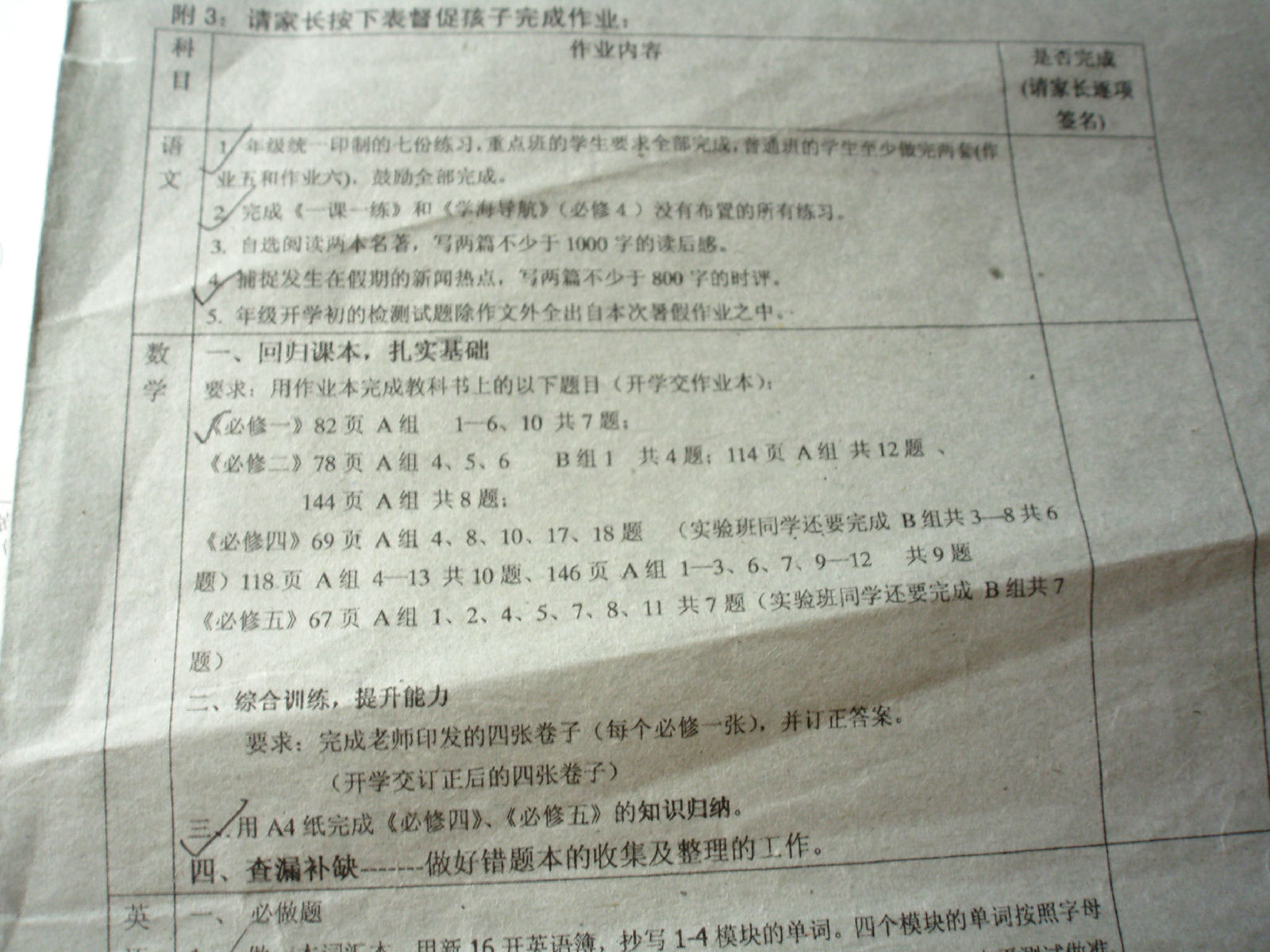 不过前段时间学校里实验班跑去补课了,但没什么作业。就是每天英语阅读和完形来着。