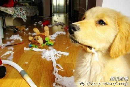 狗狗在家乱耍一通,主人回来了,害怕挨骂就摆出一副无辜的表情。。