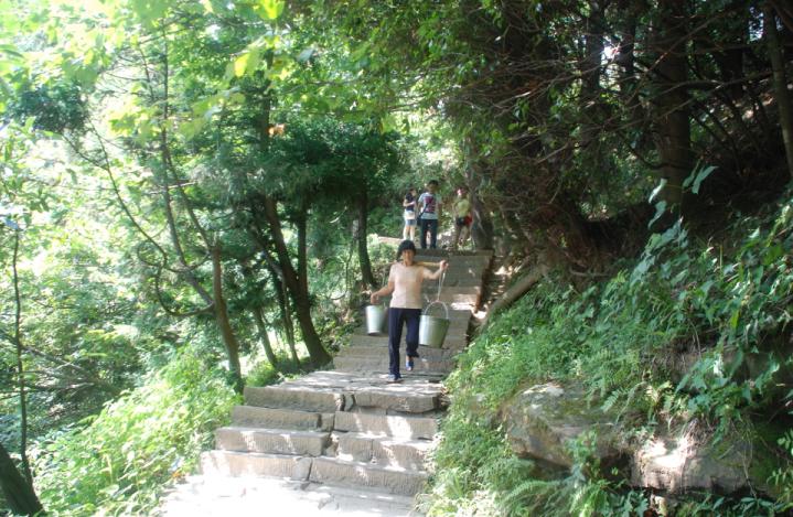 5、她,挑的是葛根粉,从山顶往山中间的休息亭挑。很凉,很甜的葛根粉。