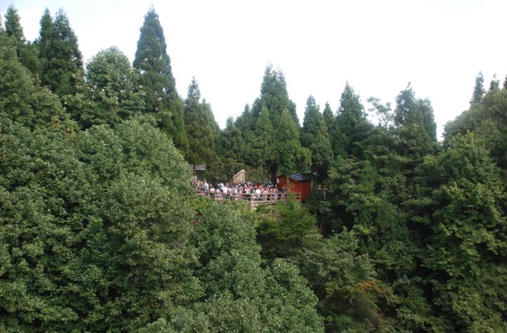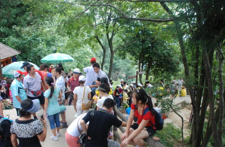 6、终于,我用了一小时零五分,到达山顶。导游就在那里等我们,她笑着对我说:“第一个喔”。在摘星台上,我看到了脚下的山顶,在烈烈的阳光下,一览众山小的那种豪情壮志,涤荡在胸怀。