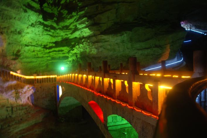 7、一座洞中的桥,五彩的灯光装饰下,也掩饰不了他的冷清与忧伤。