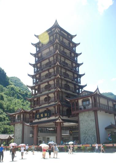 4、张家界三绝之天下第一梯。这个观光电梯不是一般的高,走了一百多米才从山里冲出来,直达山顶。