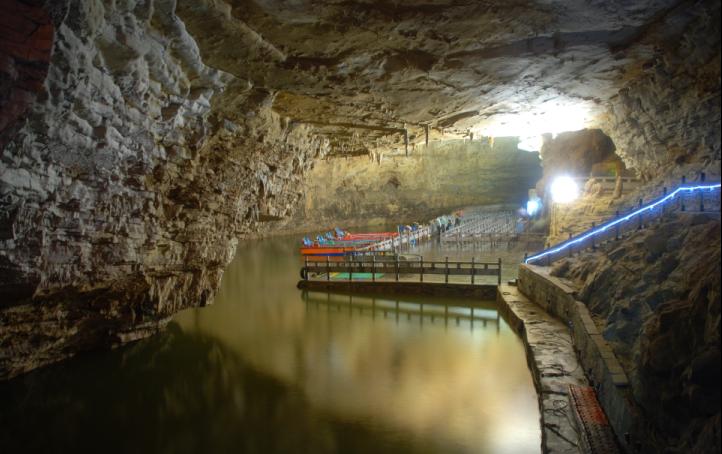 5、黄龙洞里的码头。乘着船在清冷的洞里游走,看着五光十色的洞中景,夏日里最享受的事情。