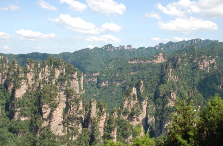 1、在袁家界,向远山望去,层峦叠嶂。