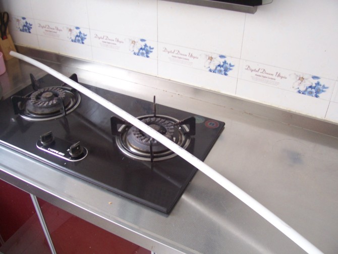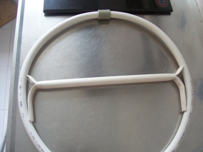 材料就是普通pvc管,五金店都是.然后就是在火上烤,做成圆形.