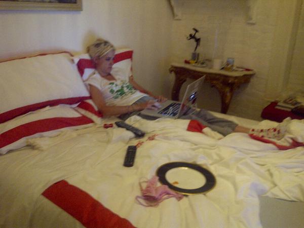 盘子放在床上。。。。。和bra。。。。。