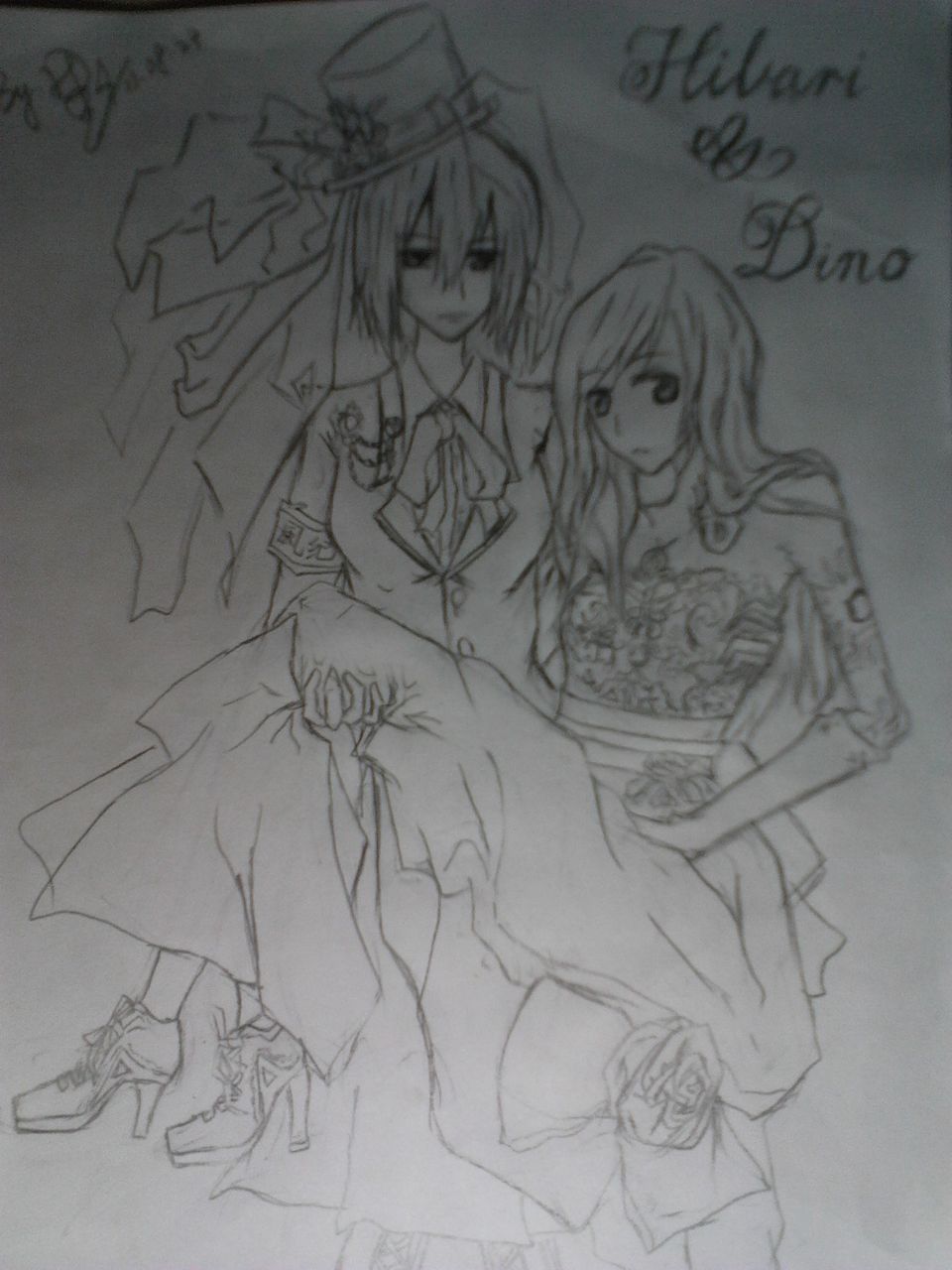 我立马脑补迪诺一定很疑惑为什么自己在这里?为什么穿着婚纱?为什么被云雀恭弥公主抱?为什么云雀恭弥一脸看似严肃却高挑眉毛?