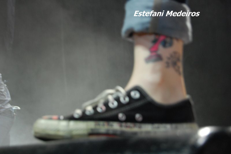 “I do. It’s on the inside of my right ankle. On the Warped Tour a few years ago, if I wore shorts or if I wore my pants rolled up, someone by the end of the day would have written “Shave me” on my ankle. So I was like, ‘I’m going to have to get that tattooed so you guys won’t have to do it anymore.’” [source]