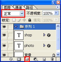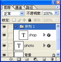 将shop文字层用鼠标拖到序列1目录下