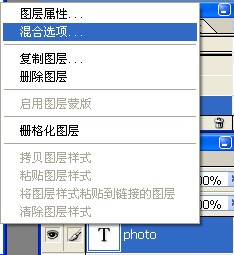 然后选中文字图层,单击鼠标右键,调出混合选项进行编辑