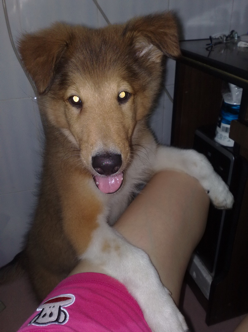 刚带回家的时候3个月不到,,只有13斤,,现在已经过了23天了,,上几天给它称了,有16斤呀,,证明我还是很疼它的..嘻嘻