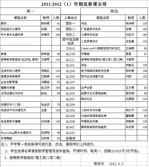 求助!有人知道选修课的课程安排咩!