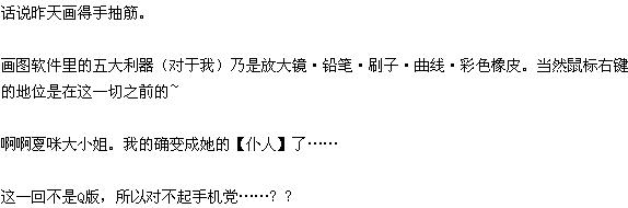 再重申一遍画图五大利器是放大镜·铅笔·刷子·曲线·彩色橡皮……前提是鼠标右键。