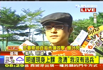 艺人明道一早到崇右技术学院影视传播系上课,明道澄清说∶「他并未逃兵,一切依照国家规定!」