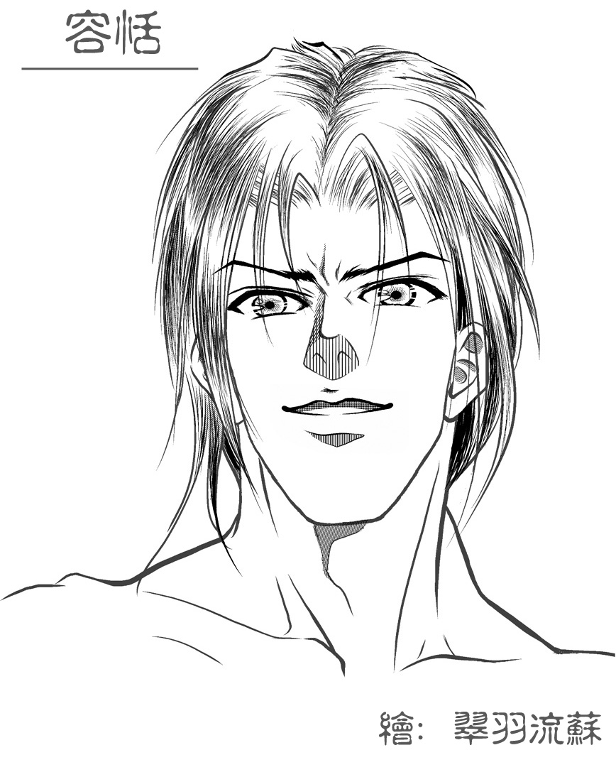 阿,有点狰狞。。有点痞子的感觉,少了帝王气和温柔的感觉。。而且感觉好年轻,不过画的是不错,只是和容恬好难联系起来。。亲,偶不是打击你哦,你很口爱的。