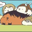 小枫蹦蹦跳跳地推门进来,看到自家欧吉桑团在床上抱着枕头滚来滚去,于是做出了上述直中垓心的发言。虎彻很受伤地撑起身子,向女儿摆出哭丧脸。