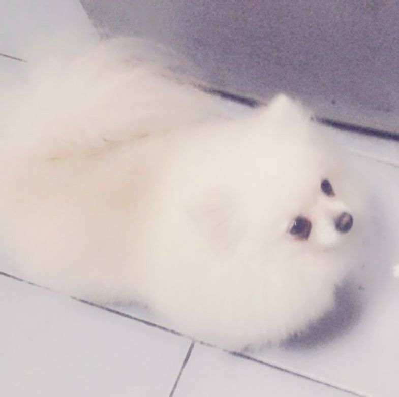 它母亲是只黄色的小博美,没它个头大,这是只小公狗