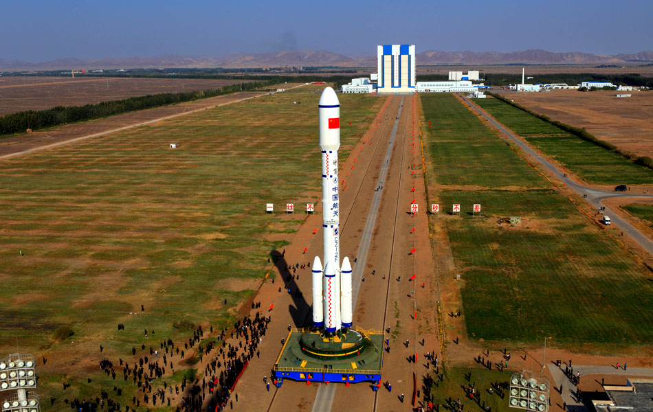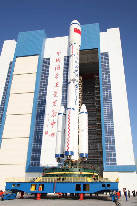 9月20日7时59分,酒泉卫星发射中心垂直装配厂房的大门徐徐升起,天宫一号目标飞行器、长征二F运载火箭组合体露出真容。当日,中国载人航天工程新闻发言人宣布,我国将实施载人航天工程首次空间交会对接任务,执行任务的天宫一号目标飞行器、长征二F运载火箭组合体已从酒泉卫星发射中心垂直总装测试厂房顺利转运至发射区。天宫一号将于9月27日至30日择机发射。