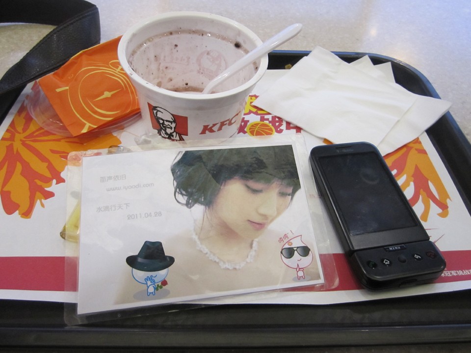 我出了火车站,接我的水滴还没来,我左右看下,看到一家KFC,于是我走了进去。