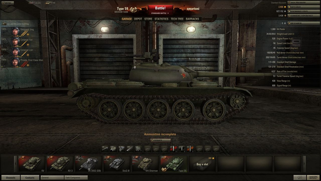 很多天没玩坦克世界了 我玩欧服的 今天上游戏有更新 竟然发现有T59。惊喜啊 一直都没充钱 刚实在忍不住啊!!!就买了。。不为别的就为是china的。