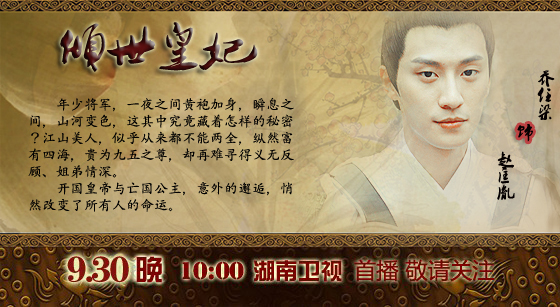 湖南卫视 9月30日起 每晚22:00 两集连播《倾世皇妃》 邀您共赏!