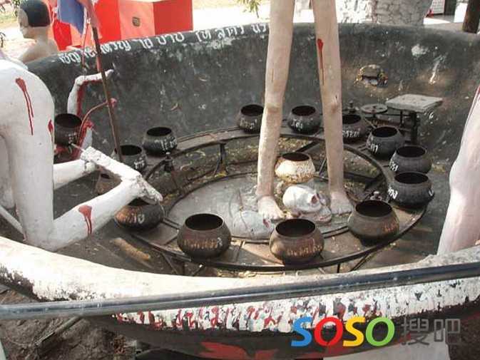 据曼谷40公里处,有一座最离奇的旅游景点——班派戎寺庙公园maleangpo“地球上的地狱”,你会看到“罪人”被魔鬼折磨的酷刑场面及许多各种恐怖的怪物雕塑,仿佛是“人间地狱”的再现。其实,这些场面都是体现佛教的“六道轮回”及恶有恶报,善有善报的报应理念,无非是通过这种直观形象的形式劝人行善积德,广结善缘