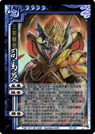 归晋:三国尽归司马,所以我就让其从众多的主公中随机抽取3张,这3张主公的主公技就归司马炎所有啦~