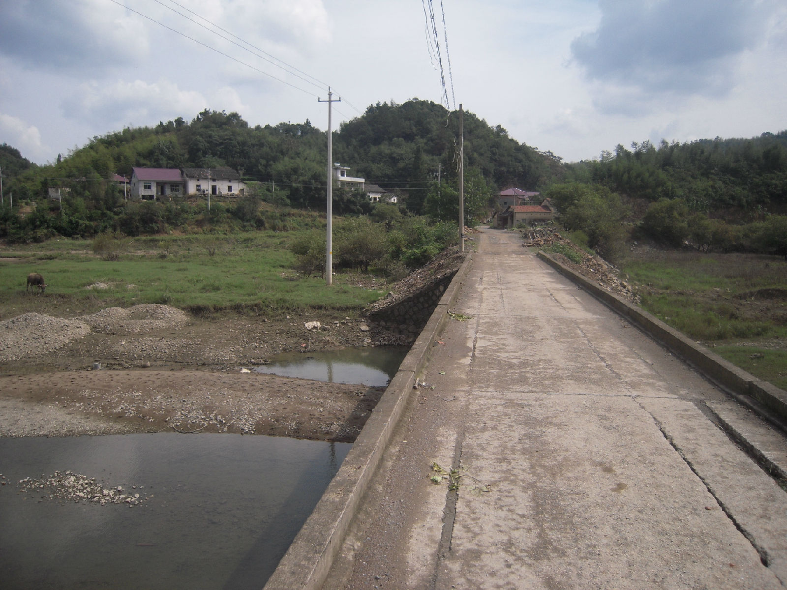 走过这座危桥,就到了村子了,江南的山村啊。