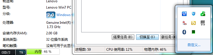 不信我给你上图,这是win7旗舰版,集显,所以显存也占了内存。两杀毒软件,两卫士,至少也占个百兆吧,你自己可以算,这也不够一个G,对吧?