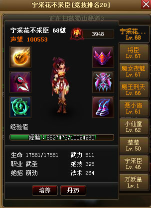 我朋友那个号4飞仙5万寿。这里说明,就没截图了。